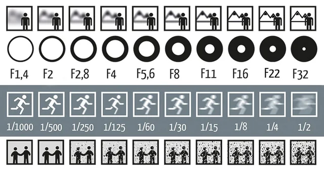 دیافراگم (Aperture): میزان نور وارد شده به دوربین از طریق لنز. به صورت f/stop مشخص میشود (مانند f/2.8).